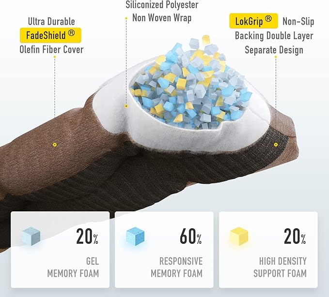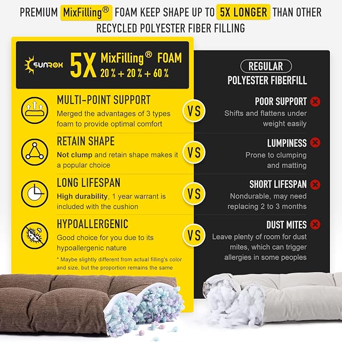 - 【Premium MIXFILLING Foam Technology】Bench cushion filled high-quality gel memory foam, premium responsive memory and high-density foam, Unique MIXFILLING technology, to help retain shape and maintain long-lasting, comfort and support, bench pads keep shape up to 5x longer than other recycled polyester fiber filling. Add the soft siliconized polyester non woven wrap layer inside cushion cover, provides extra plushness and loft, gives it a luxuriously full look.