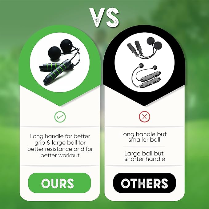 - Weighted Design to Achieve Better Workout - We offer a premium quality cordless jump rope with comfortable non-slip foam handles for easy gripping and ropes made of thick, durable PVC material attached to weighted EVA foam balls and thicker rope to provide more resistance for optimal fitness results.