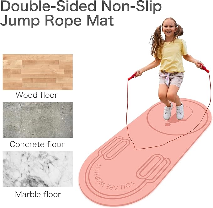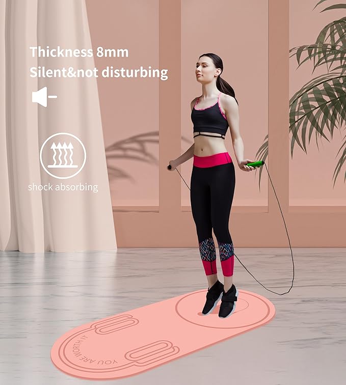 - Shock Absorption of Indoor Jumping: The specially designed jumping rope mat has the effect of noise attenuation, anti-slip and shock absorption. The high quality closed hole design enhances the shock absorption function, reduces noise, and effectively avoids disturbing the downstairs neighbors. It is the best partner for indoor jumping rope for adults & children.