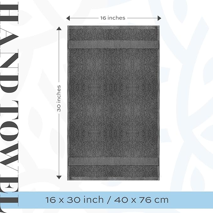 - HOTEL COLLECTION - 6-Piece Hand Towels are generously Sized at 16x30 inches. Each towel is 100% combed cotton - soft, durable, quick-dry, and wonderfully absorbent. It is more absorbent than any Turkish Cotton Face Towel.