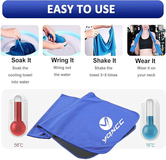 - Instant Cooling: The cooling towel is made of hyper-evaporate breathable material to wick sweat away from your skin and keep you cool
