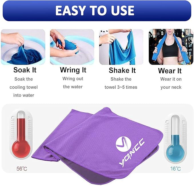 - Instant Cooling: The cooling towel is made of hyper-evaporate breathable material to wick sweat away from your skin and keep you cool
