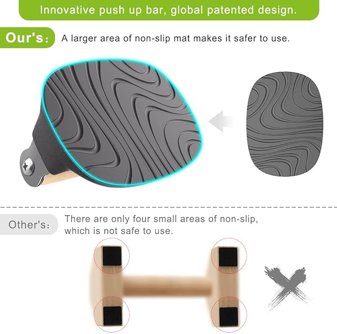 - 【Metal End & Non-slip Base】: The press-up bar is featured with two metal bracket ends, durable and sturdy. Large non-slip base ensure stability on various floor types without sliding, highly protecting you from injury during exercise, also protecting your floor from scratches.