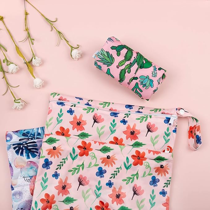 - Multi-Function: You will receive 3 pack wet bags, which size is 11.8"x14.2". They are perfect for preserving cloth diapers and other baby products, and they can also be used as swimsuit bags, bikini bags, bathing suit bags, travel bags, gym bags, storage bags, cosmetic bags, handbags, wash bags, organizer bags, breast pump parts bags, even as picnic bags. They are ideal for baby shower gift, get yours today!