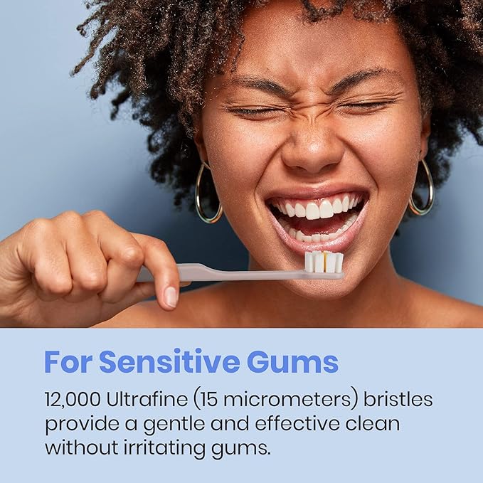 - GENTLE AND SOFT - Feel the difference between our gentle micro-bristles versus traditional nylon bristles. Our toothbrush doesn’t irritate gums, while still providing a deep clean and polish. Ideal for those with sensitive teeth and gums.