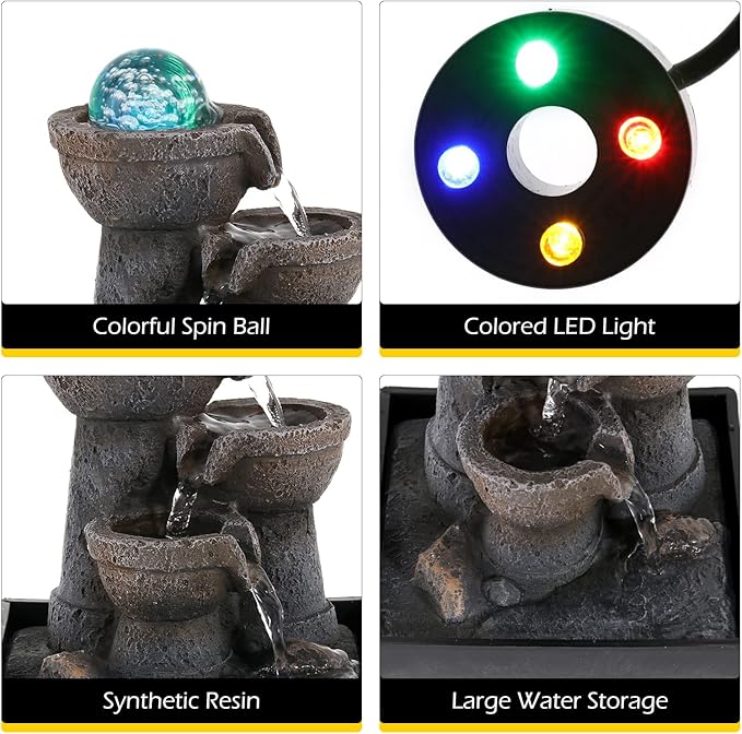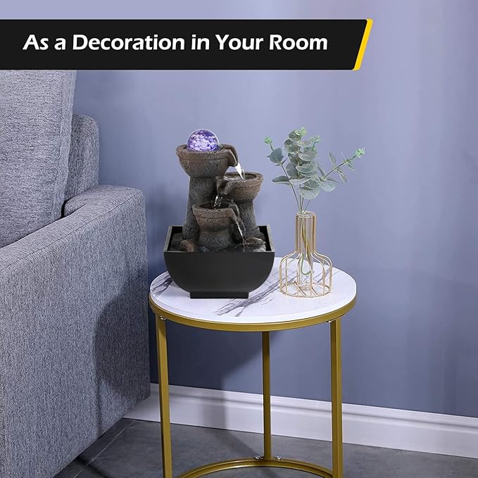 - [With LED Colored Lights]- The water fountains indoor with rolling ball, which with an LED colored light, with the flow of water, the indoor water fountain shines with colorful lights, which can add beauty to your room.