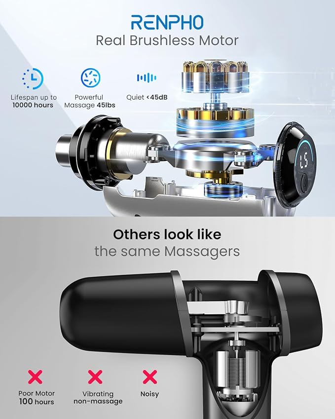 - Powerful Muscle Massage Gun: This deep tissue massage gun features a premium metal housing and a high-torque brushless motor, providing high penetration and an exquisite sports massage experience