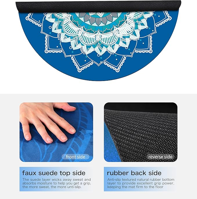 - Material: Keolorn yoga mat is made of natural rubber and suede. This suede yoga meditation mat has a diameter of 55" (140cm). The extra-large round mat is made of non-toxic and environmentally friendly natural rubber. The thickness of 3.5mm protects sports People are less likely to be injured during exercise, and relieve joint pain during exercise.
