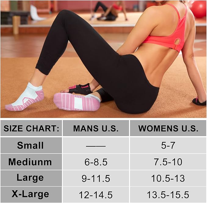 • Elastic Lycra fabric: Workout socks made with breathable and durable Lycra to hug your foot for maximum arch support, eliminating blisters. Also the elastic lycra socks are adjustable in size for both youth and adults