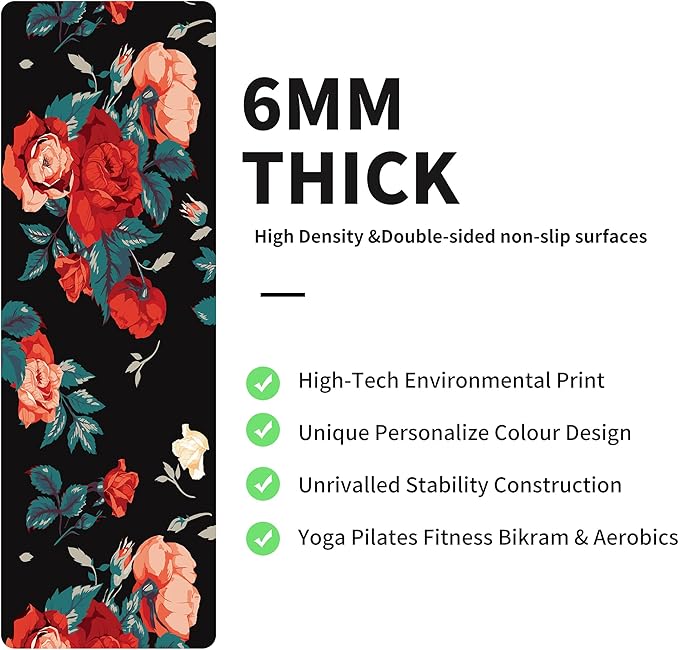 nuveti Yoga Mat Print Extra Thick TPE Non Slip Fitness Exercise Mat with Carrying Bag,72"x24" Extra Thick 6MM Exercise & Workout Mat for Yoga, Pilates Fitness and Floor Exercises