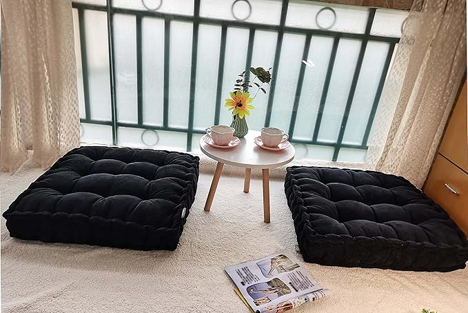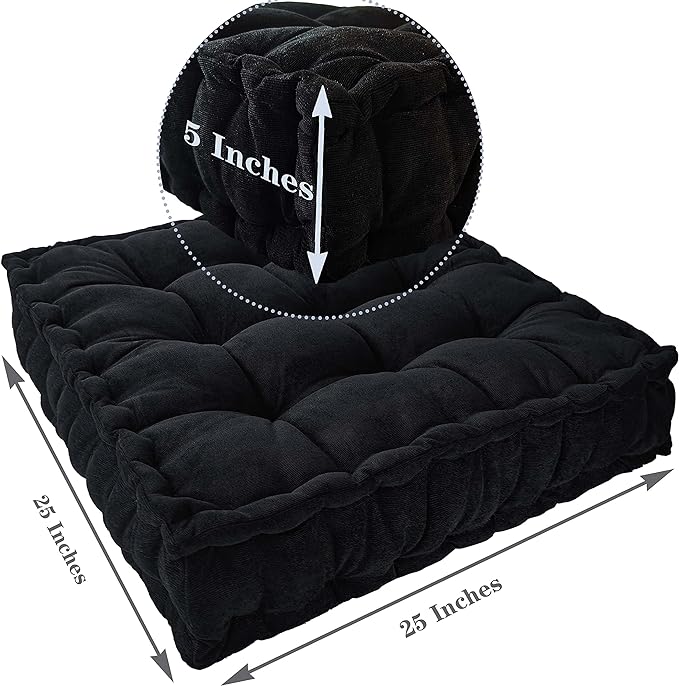 Verpert Floor Pillow 25x25 Inch Square Meditation Cushion Floor Seating for Adults Oversized Tufted seat Cushion Reading Nook for Kids, Yoga Meditation Pillow for Sitting on Floor (Black)