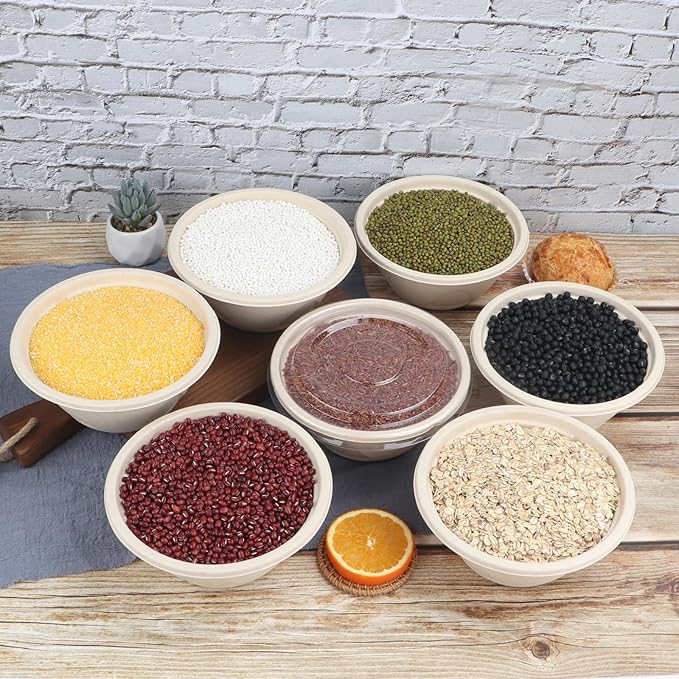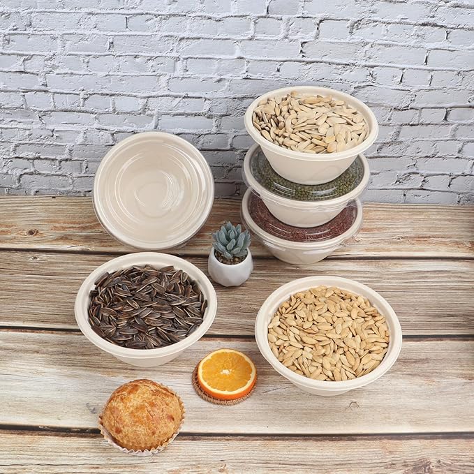 - Packing: 33 oz Sugarcane Fiber round bowls, pack of 50 bowls and 50 lids