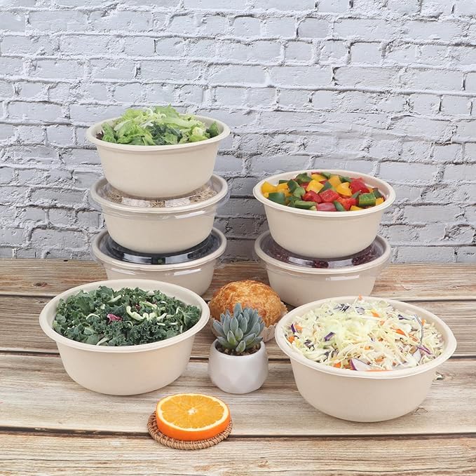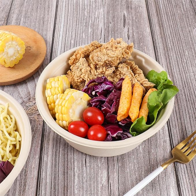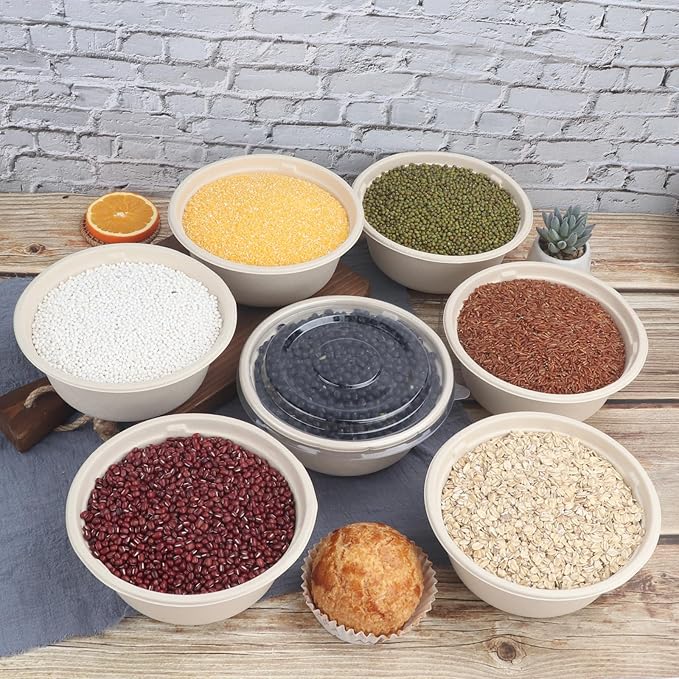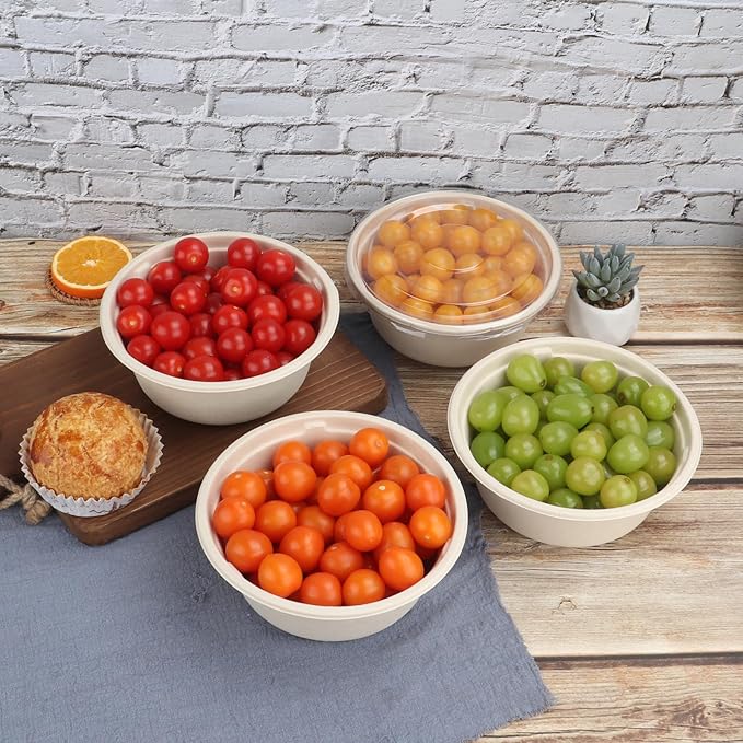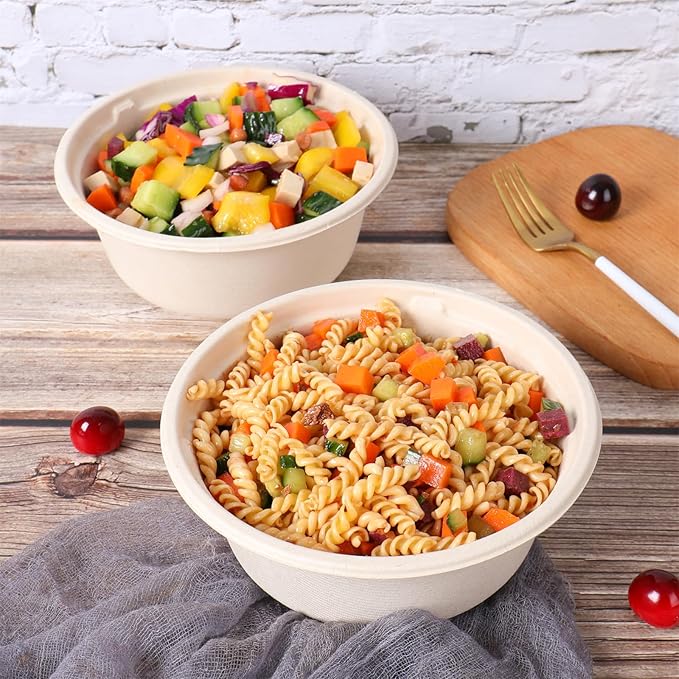 37 oz Disposable salad bowls with lids, Sugarcane Fiber Paper Bowls take away food containers Plant Fibers Freezer Safe 50 Pack