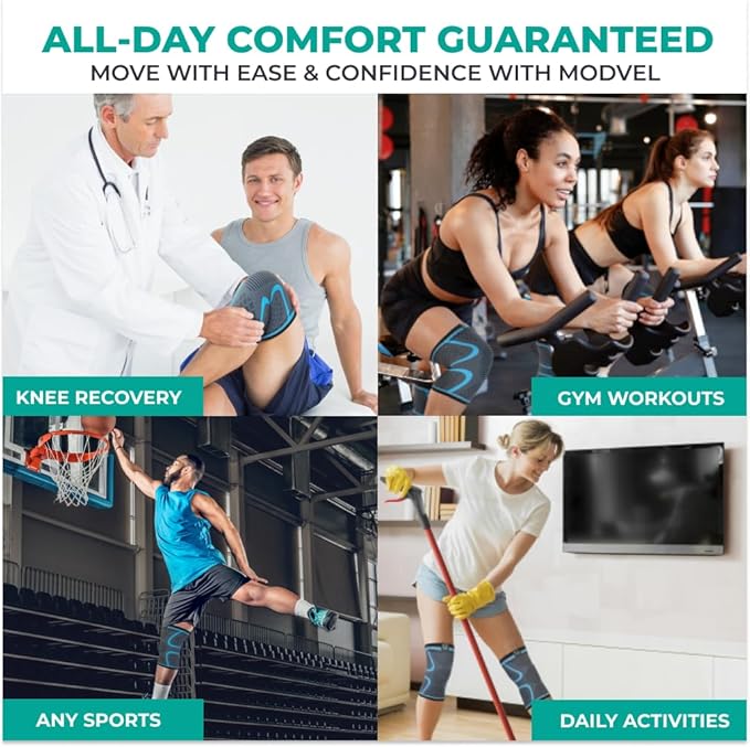 Modvel Compression Knee Brace for Women & Men, 2-Pack Knee Brace for Running Knee Pain, Knee Support Compression Sleeve, Workout Sports Knee Braces for Meniscus Tear, ACL & Arthritis Pain Relief