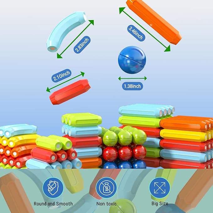 - INSPIRES UNLIMITED IMAGINATION - With its unique combination of magnetic rods and balls, these toddler toys can provide valuable learning opportunities for kids of all ages. For younger toddles, it can help develop fine motor skills, spatial awareness, and hand-eye coordination as they manipulate the magnetic rods and spheres to build structures. Meanwhile, older kids can delvelops into more complex concepts such as geometry, greatly develop their creativity, and problem-solving skills.