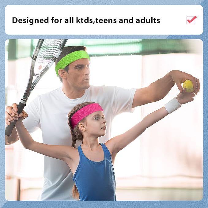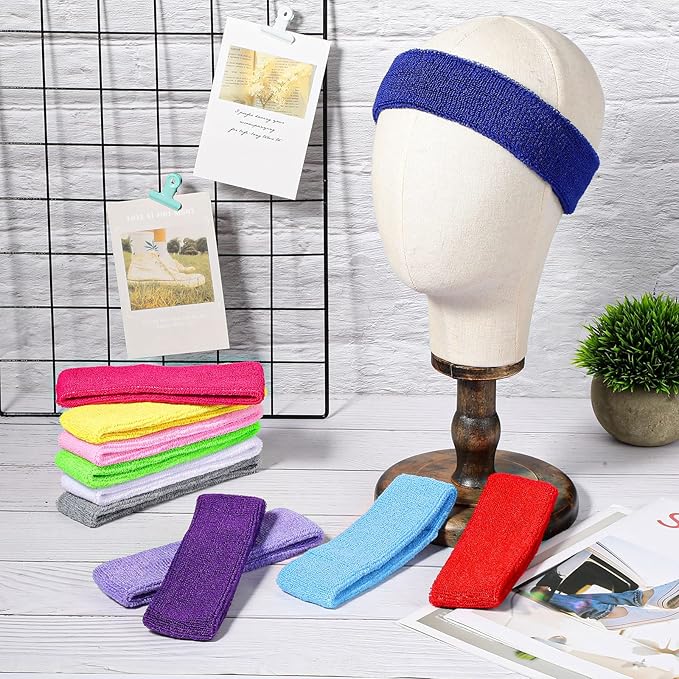 26 Pieces Sweatbands Cotton Sports Headbands Colorful Terry Cloth Sweat Absorbing Athletic Sweatband for Working Out, Basketball, Soccer, Running, Yoga, Outdoor Sports Activities Multicolor