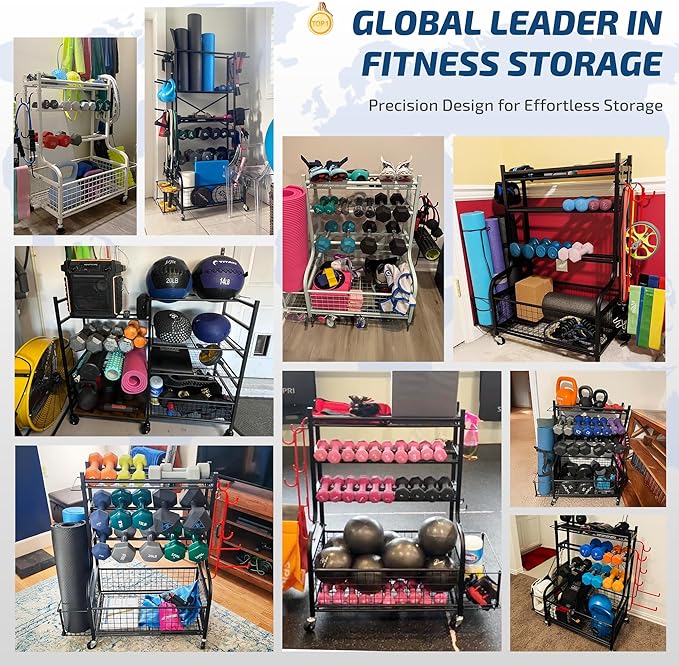 - 【Extra Large Capacity】: Our workout storage rack equipped with 3 layers of dumbbell storage racks, a side basket for yoga mat and foam roller, several side storage hangers for storing resistance band and roller wheels. Bottom storage rack is perfect for storing balls, yoga blocks and other exercise equipment.