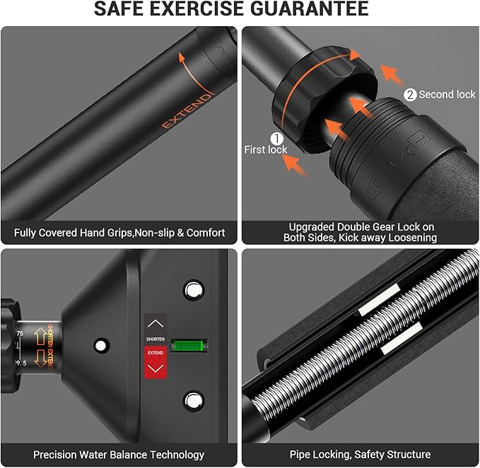- Upgraded Mechanic Lock System: This push-up bar features a new 360-degree rotatable dual gear lock on both ends to protect the bar from loosening. The doorway exercise bar has passed extensive testing, ensuring safety and sturdiness for confident use