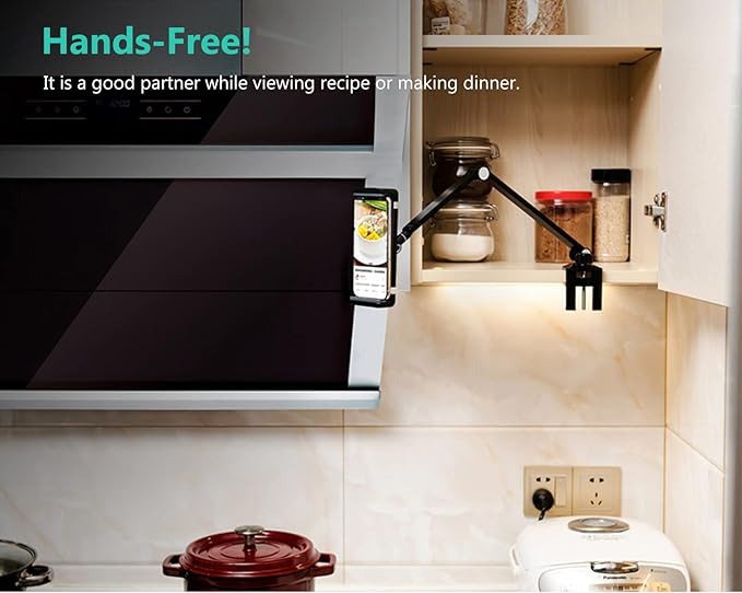 - 【Never Fall Off】 Inifispce Tablet Holder has been upgraded from three aspects, strengthen elastic silica gel clamp, sturdy and thickened all-metal long arm rod, high-quality aluminum alloy clamp base and 2 extra rubber pads to protect your furniture from scratch, allowing you to securely clamp it on the desk, table, bed headboard, nightstand, kitchen counter etc.