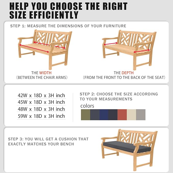 - Size Selection - Including 1 bench cushion measuring 59” W x 18” D.( The size description is only for the cushion size, accurately measuring the dimensions of your furniture's seating area in advance, make sure the cushion size fits your furniture ).