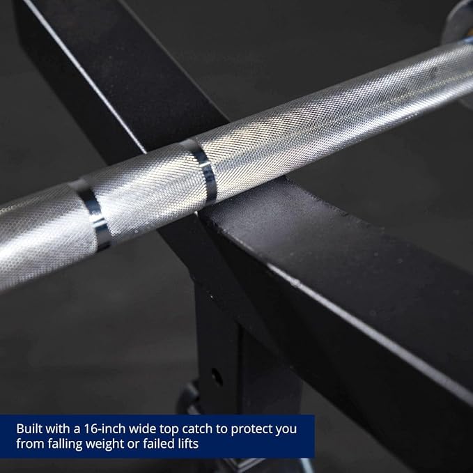 - Built with a 17-inch wide top catch to protect you from falling weight or failed lifts