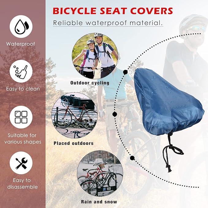 - Nice Helper: the cycling rain cover can be a nice helper for you on bike seat maintaining, helping keep your seat from sun, rain, snow and more, thus enhancing the serviceable life