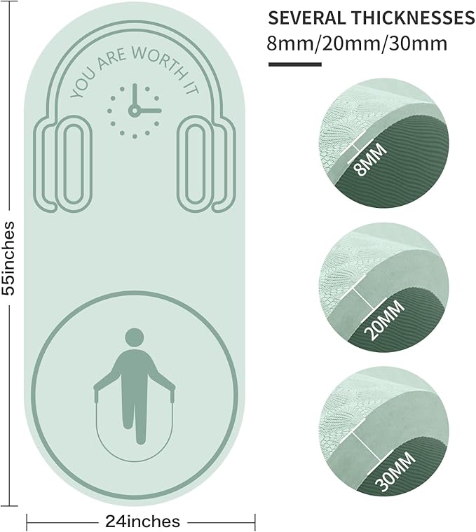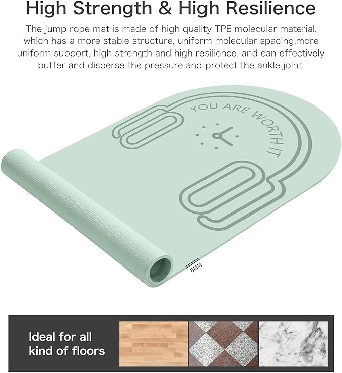 8/20/30mm Jump Rope Mat Fitness Exercise Mat Durable, Non-Slip, Workout Mats with Jump Rope & Carrying Bag for Home Gym Flooring (55"x 24")