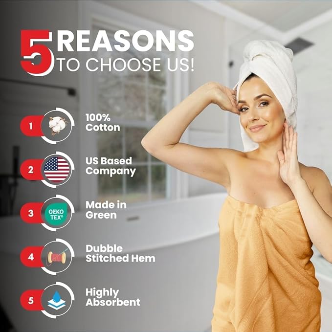 - PREMIUM QUALITY: Our bath towels are made from 100% ring spun cotton, these towels are incredibly soft and plush. They offer a luxurious feel against your skin, making every bath or shower a spa-like experience.