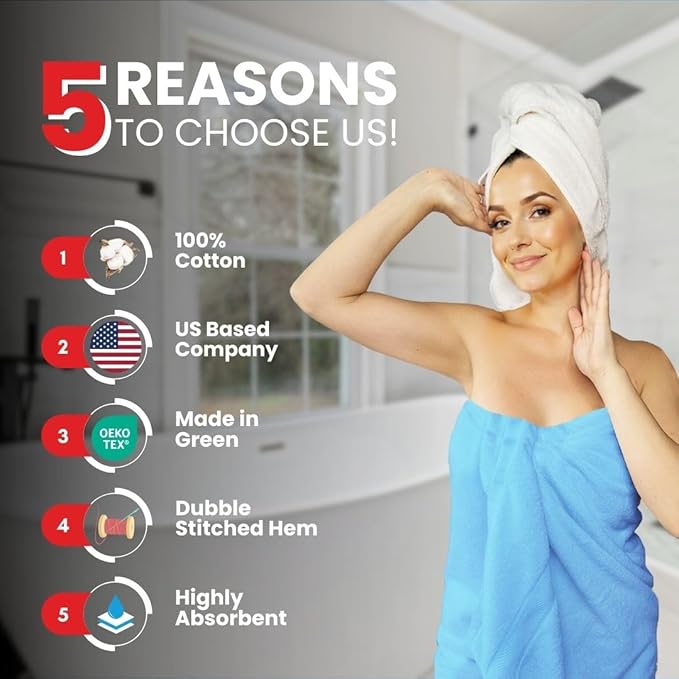 - PREMIUM QUALITY: Our bath towels are made from 100% ring spun cotton, these towels are incredibly soft and plush. They offer a luxurious feel against your skin, making every bath or shower a spa-like experience.