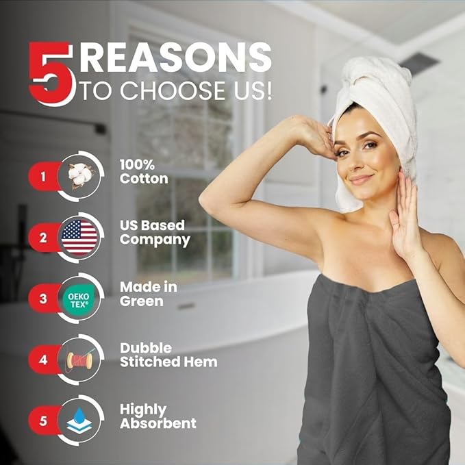 - PREMIUM QUALITY: Our bath towels are made from 100% ring spun cotton, these towels are incredibly soft and plush. They offer a luxurious feel against your skin, making every bath or shower a spa-like experience.