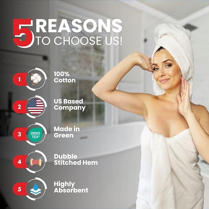 - PREMIUM QUALITY: Our bath towels are made from 100% ring spun cotton, these towels are incredibly soft and plush. They offer a luxurious feel against your skin, making every bath or shower a spa-like experience.
