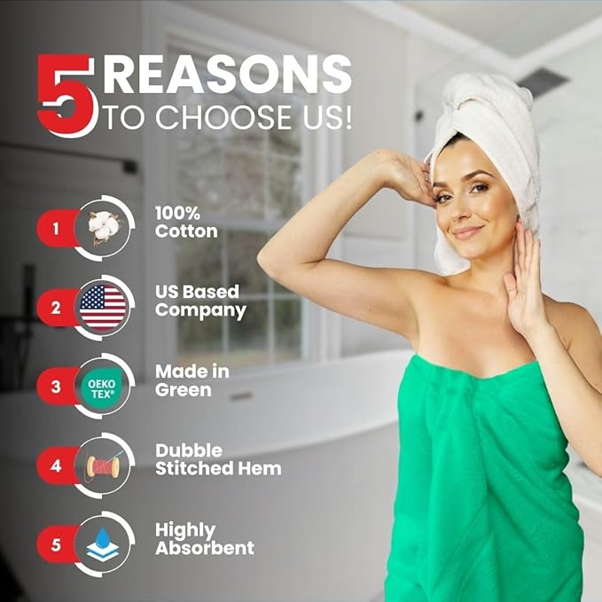 - PREMIUM QUALITY: Our bath towels are made from 100% ring spun cotton, these towels are incredibly soft and plush. They offer a luxurious feel against your skin, making every bath or shower a spa-like experience.