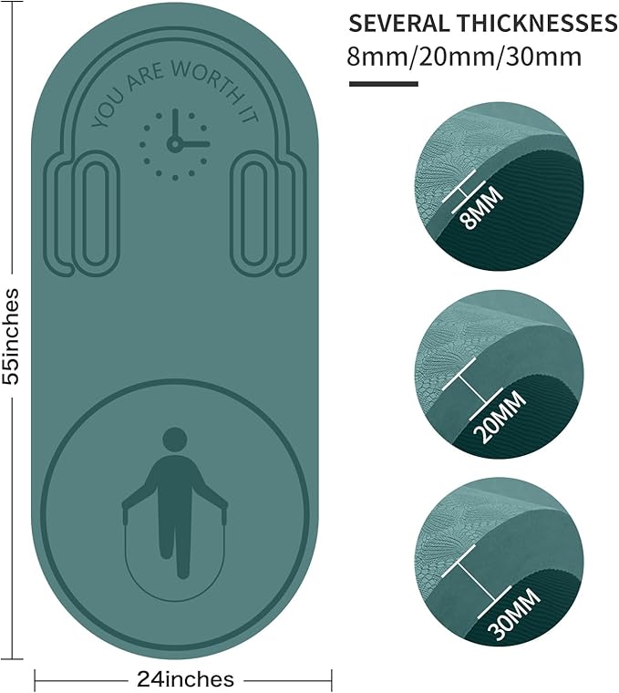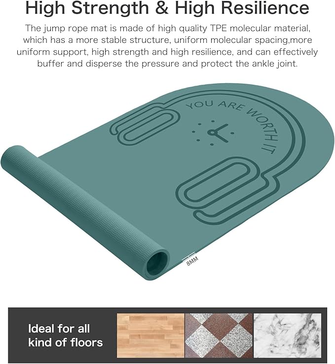 8/20/30mm Jump Rope Mat Fitness Exercise Mat Durable, Non-Slip, Workout Mats with Jump Rope & Carrying Bag for Home Gym Flooring (55"x 24")