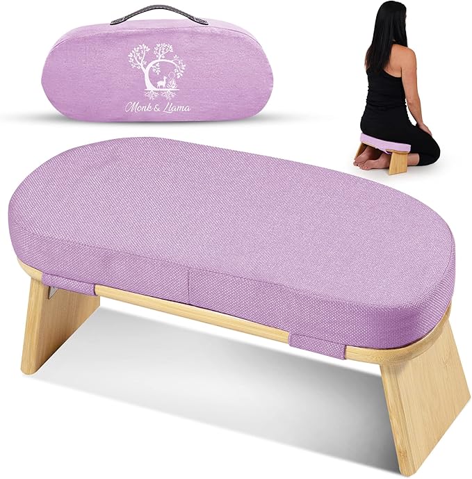 Monk & Llama Meditation Bench - Foldable, Ergonomic, Bamboo Kneeling Stool— Perfect Seiza Bench Meditation Stool Chair for Prayer & Travel - Deeper & Enjoyable Sessions