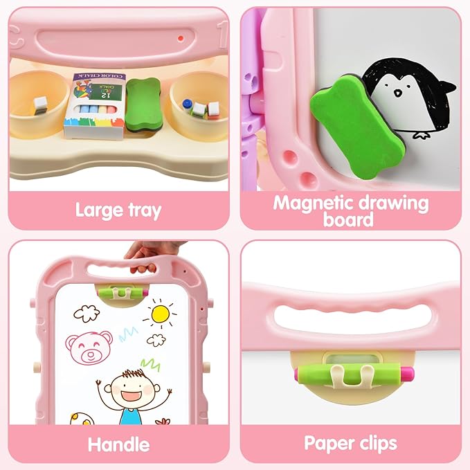Amagoing Easel for Kids, Adjustable Standing Art Easel for Toddler, Double Side White Chalk Board with Painting Accessories, Birthday Christmas Gift for Little Girls and Boy Age 3 4 5, Pink