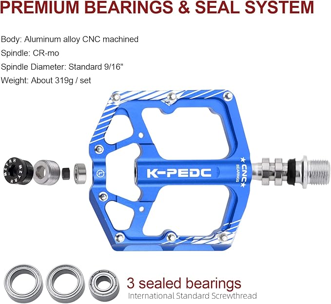 - DURABLE MATERIAL and UNIVERSALLY : This mtb bike pedal is made of CNC machined aluminum alloy 6061, Cr-Mo steel axle and 9/16 inch standard spindles. Suitable for most of mountain bikes, MTB, road bikes, urban bikes, BMX bikes, etc