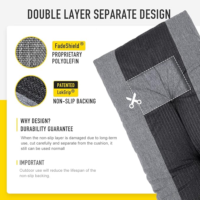 - 【 Double-layers Bottom Separate Design】In addition to the LokGrip non slip backing layer, also have peoprietary polyolefin protective layer inside, which effectively prevents damage to the foam filling due to friction. Even if the spider web shape bottom non slip layer is damaged due to long-term use, cut carefully and separate from it, the chair cushion also can still be used normal, double protective, make the chair cushion more durable.