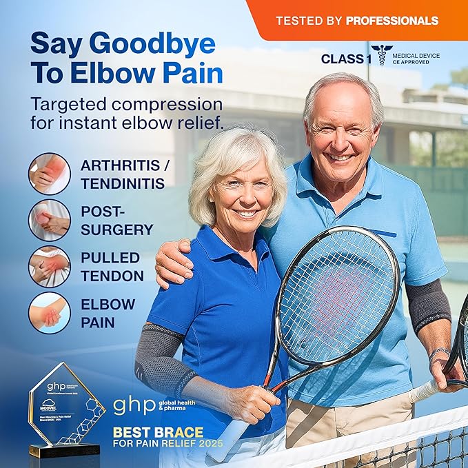 - Elbow Support For Pain & Injuries - It's designed to provide excellent compression that may help ease pain and discomfort caused by swelling, tennis and golf elbow, tendonitis, and other related injuries.