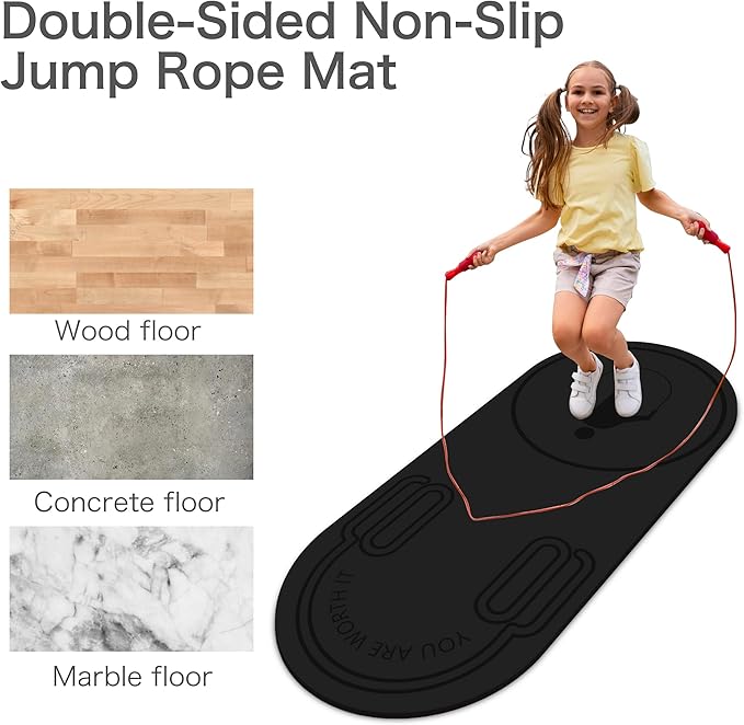 - Jump Rope Mat with NON-SLIP Function: The anti-skid pattern of double-sided texture design can quickly and effectively drain the moisture on the contact surface and increase the friction. The front side is dedicated to prevent slippage of the human body, and the back side is dedicated to various floors for strong adsorption. It has excellent non-slip advantages and prevents injuries. You can choose this rope skipping mat boldly and safely.