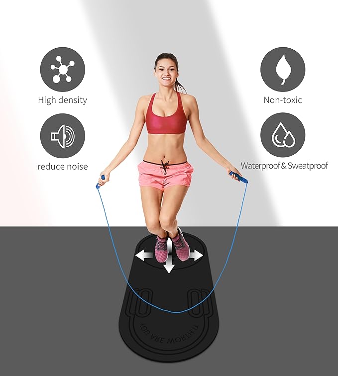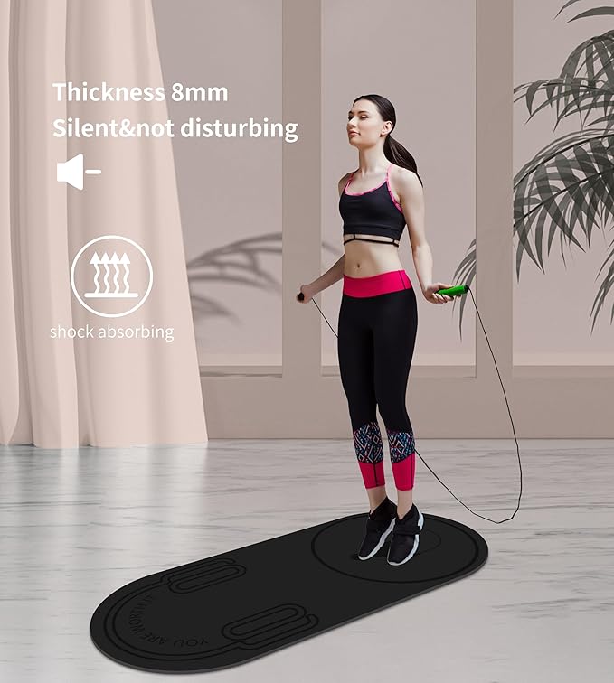 - Shock Absorption of Indoor Jumping: The specially designed jumping rope mat has the effect of noise attenuation, anti-slip and shock absorption. The high quality closed hole design enhances the shock absorption function, reduces noise, and effectively avoids disturbing the downstairs neighbors. It is the best partner for indoor jumping rope for adults & children.