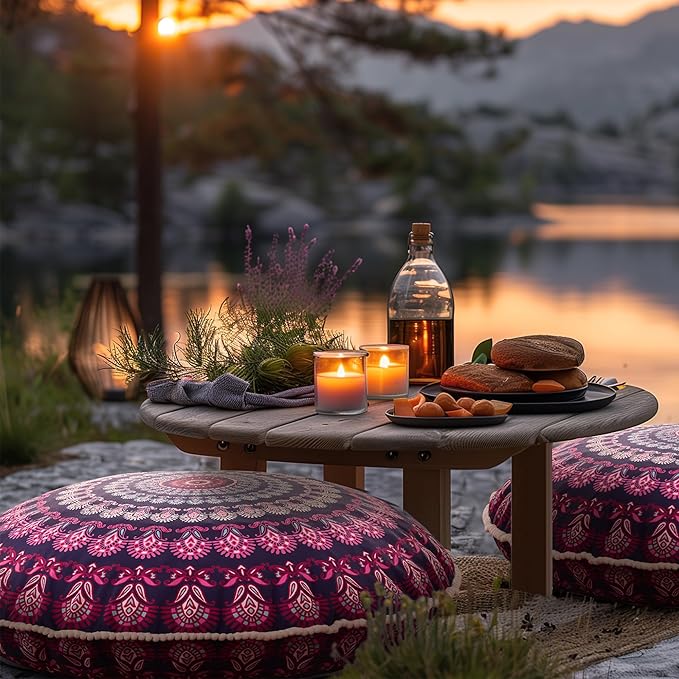 - 2 IN 1 INSERT AND COVER: This round white pillow insert is the perfect fit with this mandala cover. Purchasing both separately often results in the lesser quality of one so you not only save time but your product is consistent as well. This cushion is added with premium shredded memory foam that has a good rebound so it won’t flatten like typical floor cushions.