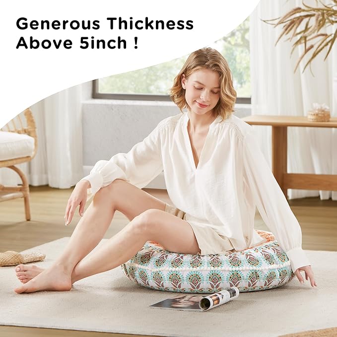 Codi Meditation Floor Pillow, Round Large Pillows Seating for Adults, Bohemian Mandala Circle Cushion for Outdoor Fireplace Yoga Living Room, 32 Inch, Memory Foam Added, Coral