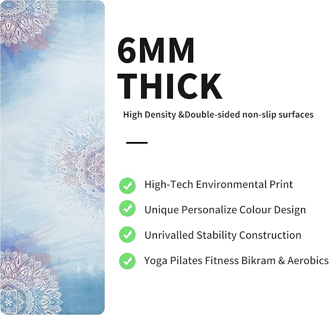nuveti Yoga Mat Print Extra Thick TPE Non Slip Fitness Exercise Mat with Carrying Bag,72"x24" Extra Thick 6MM Exercise & Workout Mat for Yoga, Pilates Fitness and Floor Exercises
