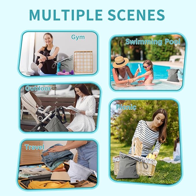 - Light & Easy to Wash: They are very light, fold up easily and take up less space and you can easily put them in your handbag or suitcase. A truly wonderful baby wet bag that allows you to carry your wet and dry items in the same bag. They are machine washable, just tumble dry low which makes them last up to hundreds washes. Wet items must be wrung out before placed in the bag, excess water may cause leaks through the seams.