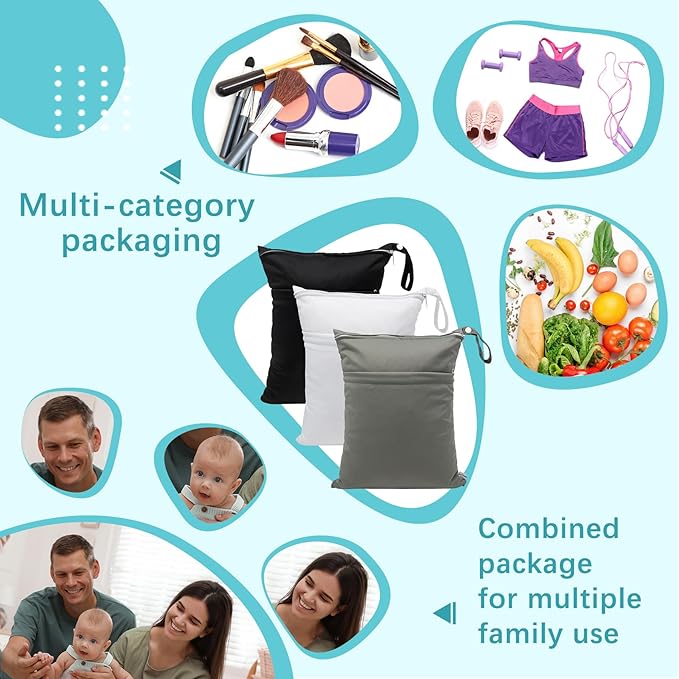 - Multi-Function: You will receive 3 pack wet bags, which size is They are perfect for preserving cloth diapers and other baby products, and they can also be used as swimsuit bags, bikini bags, bathing suit bags, travel bags, gym bags, storage bags, cosmetic bags, handbags, wash bags, organizer bags, breast pump parts bags, even as picnic bags. They are ideal for baby shower gift, get yours today!