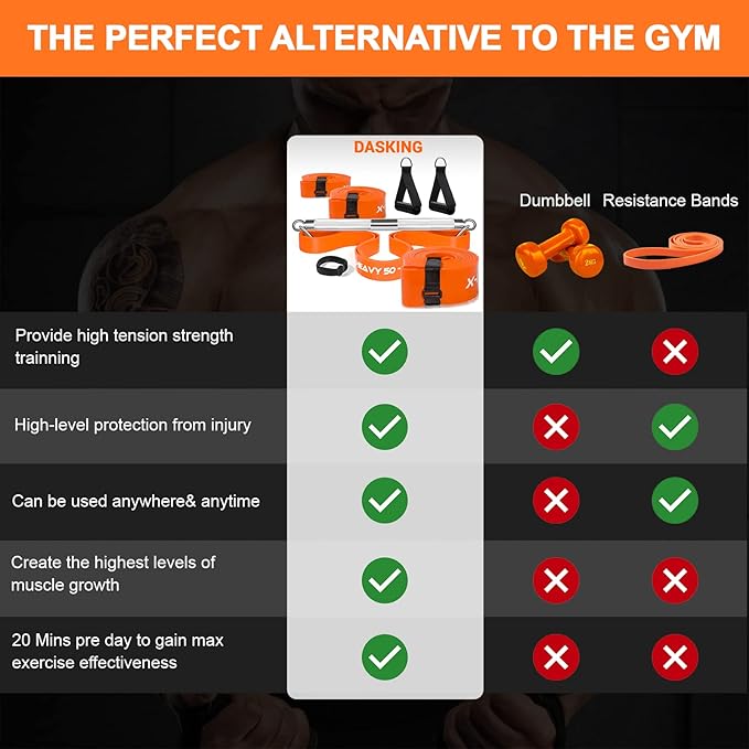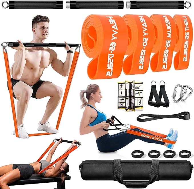 - ποΈββοΈ [7+ Gym Machines in 1 Kit] Replace bulky equipment! Create over 7 configurations: Bar + Bands (bench press/rows) Handles + Bands (bicep curls) Door anchor + Bands (lat pulldowns) Mix with your existing gear for endless routines!