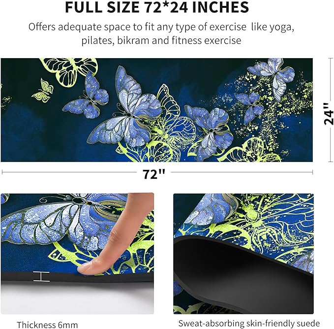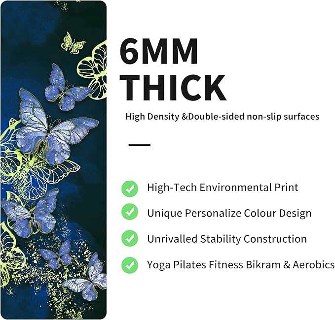 - ▨ EXTRA THICK LONG AND WIDE:72"x 24" offers adequate space to fit any type of exercise like yoga, pilates, fitness exercise and so on. nuveti's exercise mat is is more safer and comfortable. It is perfect for practicing balance postures, Especially the 6mm extra thick is high density, Provides excellent cushioning and resilience, All our mats come with a free bag for easy transport from home to yoga class.