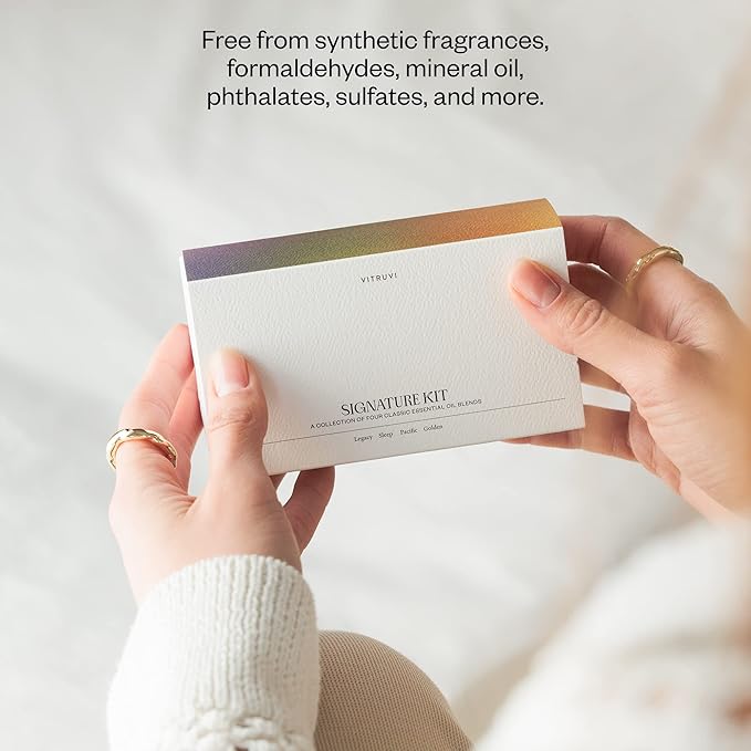 Vitruvi Signature Blend Essential Oils Kit | Floral, Citrus, Herbal, and Woodsy Aromas | 100% Pure Essential Oil Set, Essential Oils for Diffusers Aromatherapy 4x5 ml (0.17 fl. oz.)