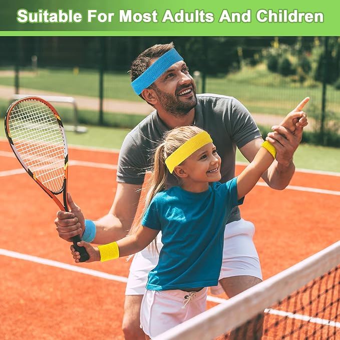 - Sweat Absorption: this tennis wristband set is made of quality sweat absorbent material, which can effectively absorb sweat and dry quickly; The sports headband can keep your eyes away from sweat and messy hair interference; The wrist strap helps wipe away excess sweat from the face, provides protection for your wrist, making your movements more secure and comfortable