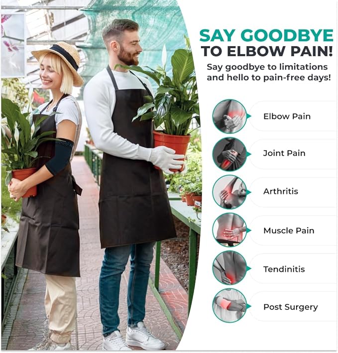 - Elbow Support For Pain & Injuries - It's designed to provide excellent compression that may help ease pain and discomfort caused by swelling, tennis and golf elbow, tendonitis, and other related injuries.